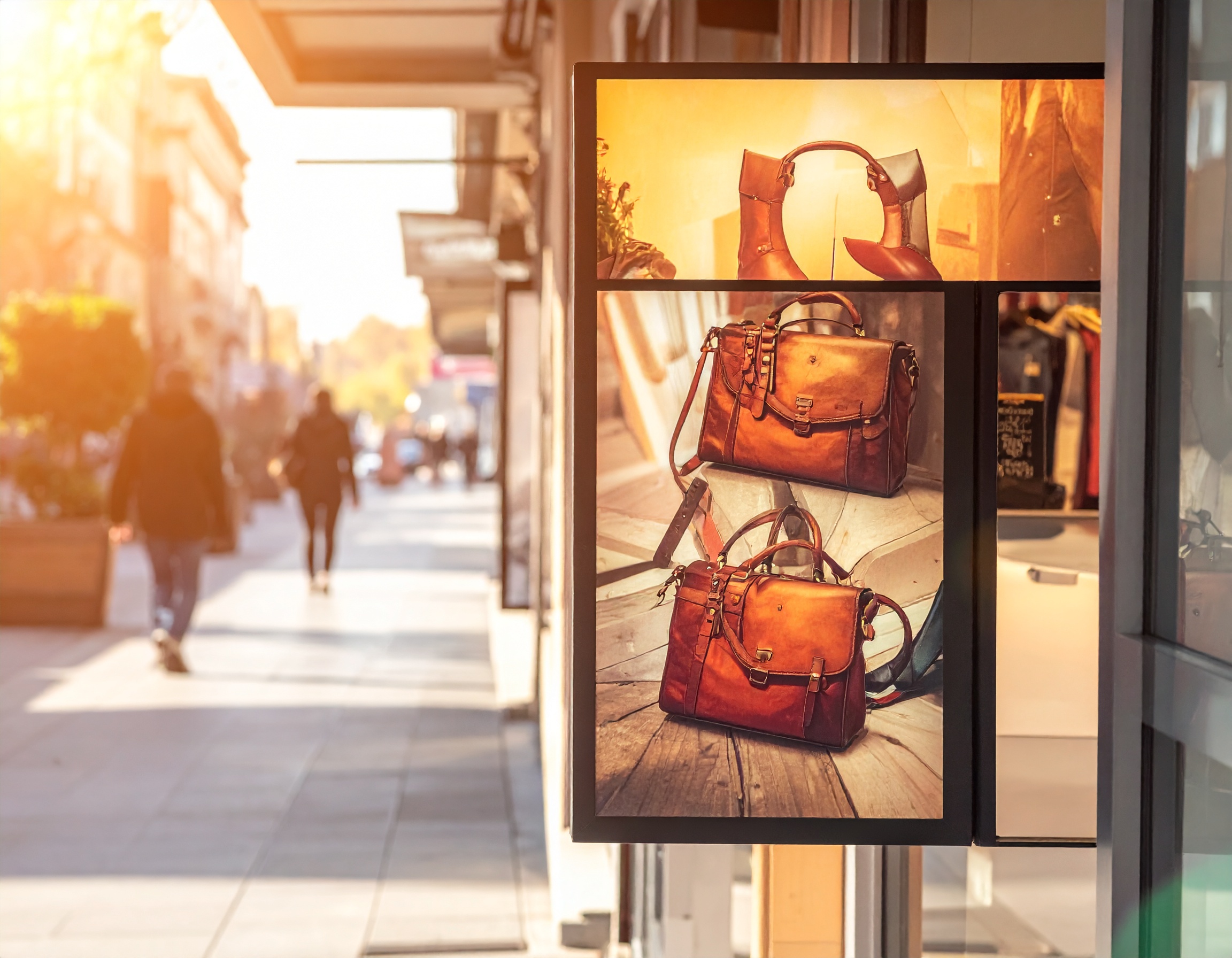 ・直射日光が当たるショーウィンドウなど:日光の影響で訴求力が落ちないよう、2,000〜4,000cd/㎡の高輝度モデルが推奨されます。