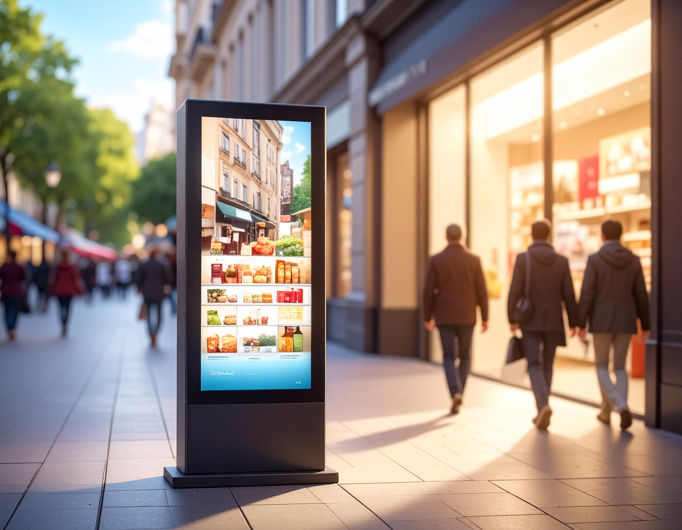 デジタルサイネージの輝度は、屋内か屋外か、照明や直射日光がどのくらい当たるかを基準に選びます。