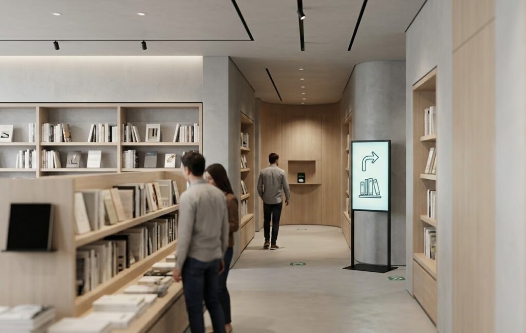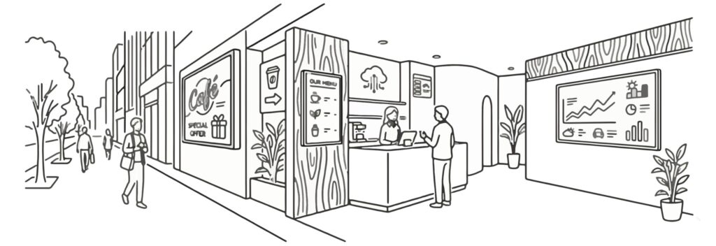 店舗開発の視点では、デジタルサイネージは単なる告知ツールではなく「動くインテリア」としての側面を持ちます。