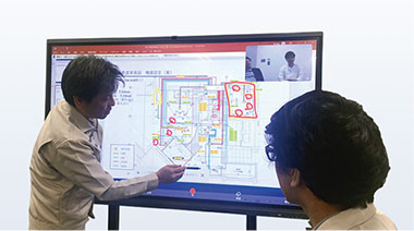 従来の手書きの図面やメモではなく、図面をデジタルホワイトボードに投影し、現場のメンバーがリアルタイムで修正や注意点の確認が可能です。コミュニケーションとプロジェクト管理の改善は、建設現場の作業効率を飛躍的に向上させ、結果的にプロジェクトの品質向上に繋がります。