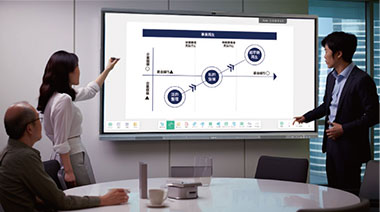 オンラインとリアルを融合し、スマートな会議を実現。画像への直接書き込みや無線での画面ミラーリング機能を搭載し、情報共有とコミュニケーションを加速させるデジタルホワイトボードです。
